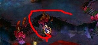 然后往上走到这个位置 ,停下用雪雨把BOSS冻结住,然后用血月银丝攻击BOSS,等BOSS绕上来后开着星火天火继续遛BOSS。